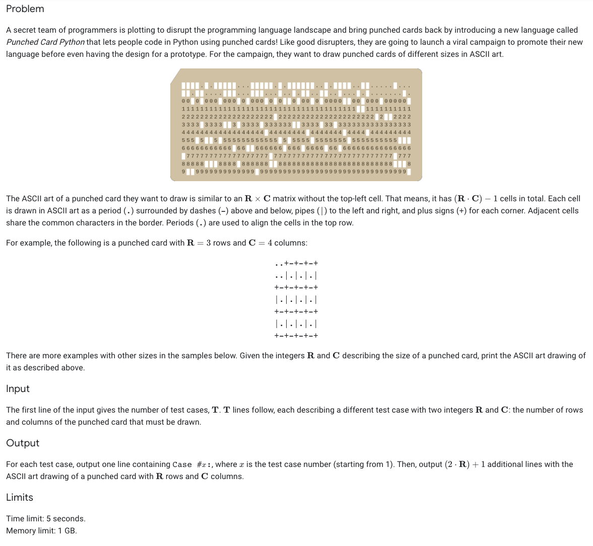 문제 설명은 영어로 길게 나와있지만 특별한 내용은 없고, 천공 카드 모양을 출력해내면 된다.